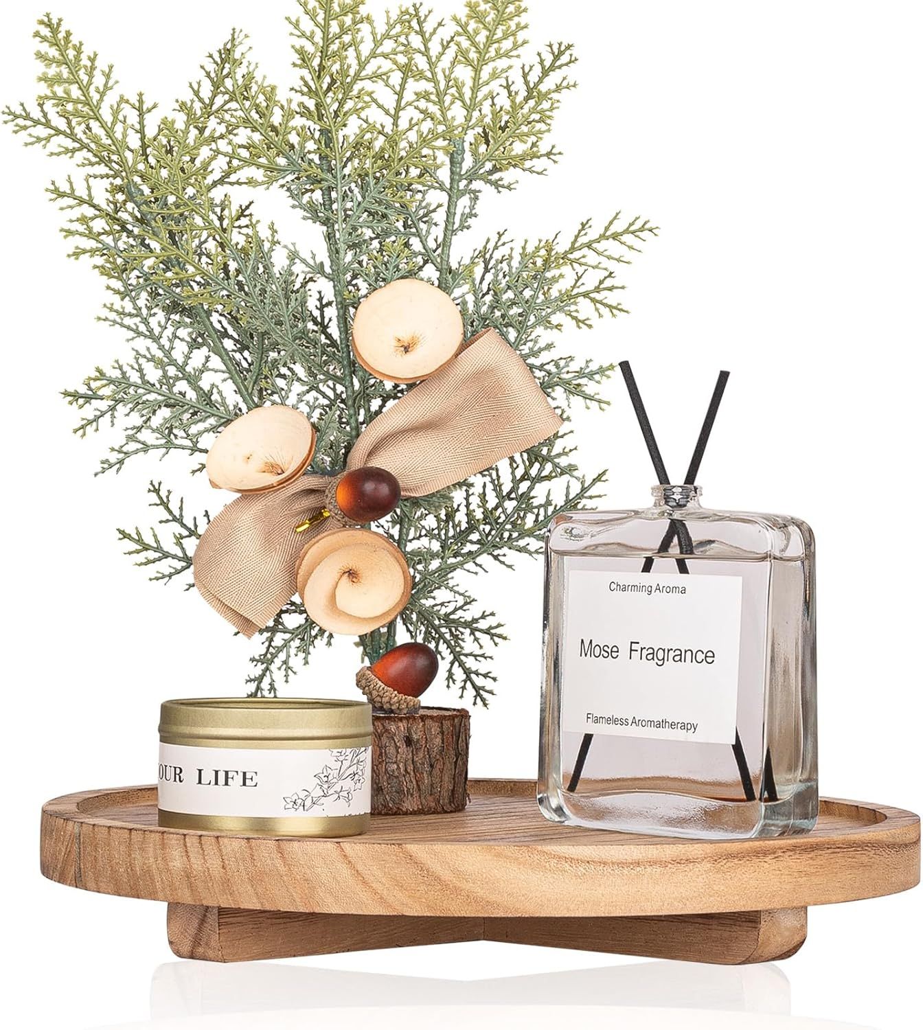 2.Natural Handmade: Made from premium wood, 100% handcrafted, safe and odorless, with a sturdy structure and smooth double sides. Each round tray has a unique texture, adding a charming natural touch to your home décor.